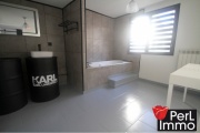 Au rez-de-chaussée, entrée, cuisine-salle à manger avec ilot central et éléments de cuisine récents, d’une surface totale de 19 m² avec accès sur salon de 19 m² et terrasse intimiste de 15,5 m², chaufferie-buanderie (avec meuble de rangement et plan de travail pour le linge) également accessible de la terrasse.